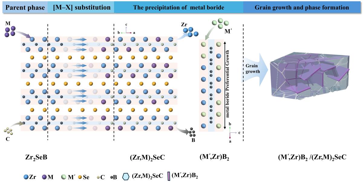 特种陶瓷因其低密度、高强度以及出色的抗氧化/耐腐蚀性能,被广泛应用于核反应系统、航空航天等极端环境领域。其中,三元层状MAX相陶瓷(化学通式为Mn+1AXn)作为一类备受关注的结构材料,凭借其特殊的纳米层状结构,巧妙地融合了金属的良好导电性、可加工性与陶瓷的高强度、耐高温特性。值得注意的是,共价型MAX相比金属型MAX相具有更优秀的耐腐蚀性、更高的强度等优势成为工程结构材料的理想候选。然而,在Zr2SeC等共价型MAX相中,M-A键的强共价性虽赋予材料更高的结构稳定性,也牺牲了一部分韧性及塑性,这一关键缺陷限制了其更为广泛的实际工程应用。